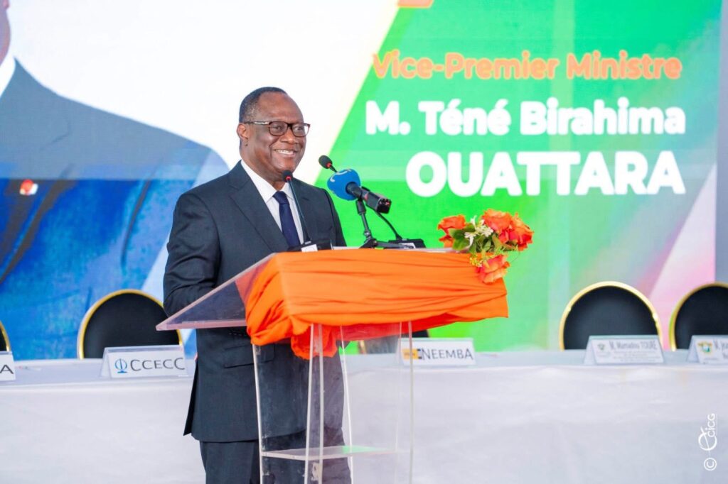 Téné Birahima Ouattara, Vice-Premier ministre, représentant le Premier ministre Robert Beugré Mambé, a insisté sur deux axes prioritaires : la lutte contre les stéréotypes pour encourager les jeunes filles (applaudies dans la salle), et l’adaptation aux défis technologiques, notamment l’intelligence artificielle.