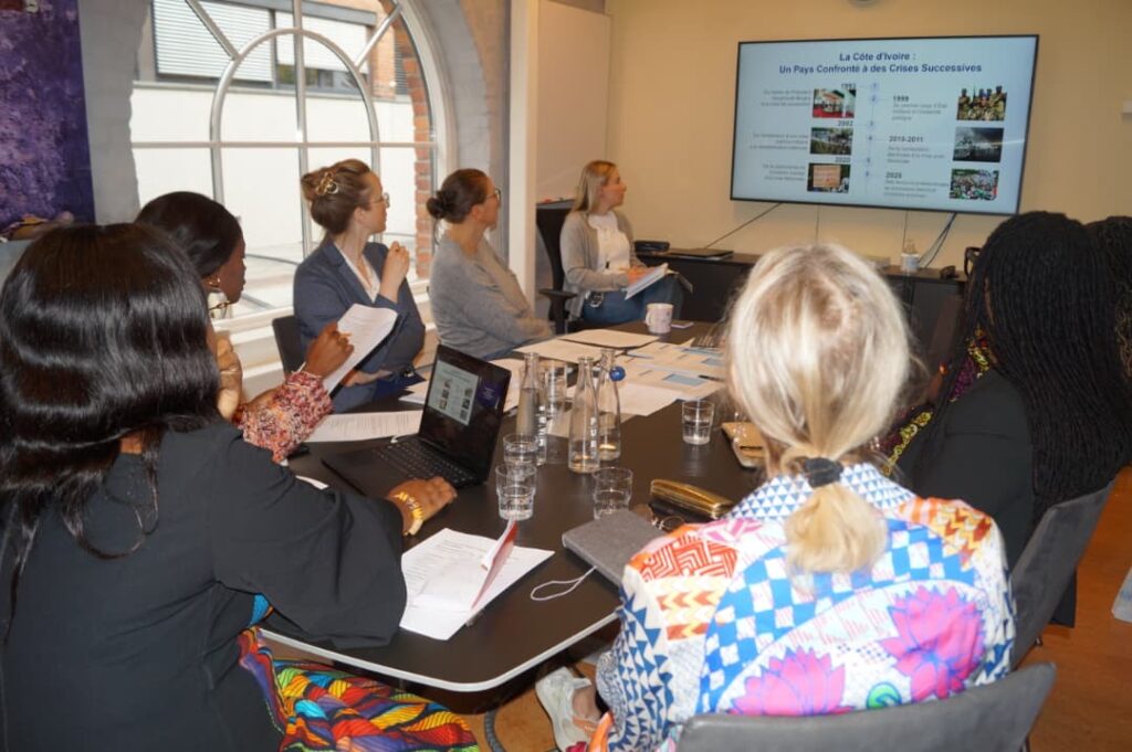 À cette même date, madame Euphrasie Kouassi Yao a ensuite échangé avec Mme Sahana Sriskandarajah du NCA sur le triptyque Genre, Paix et Sécurité, enjeu central à l’approche du 25ᵉ anniversaire de la Résolution 1325 de l’ONU sur les femmes, la paix et la sécurité.